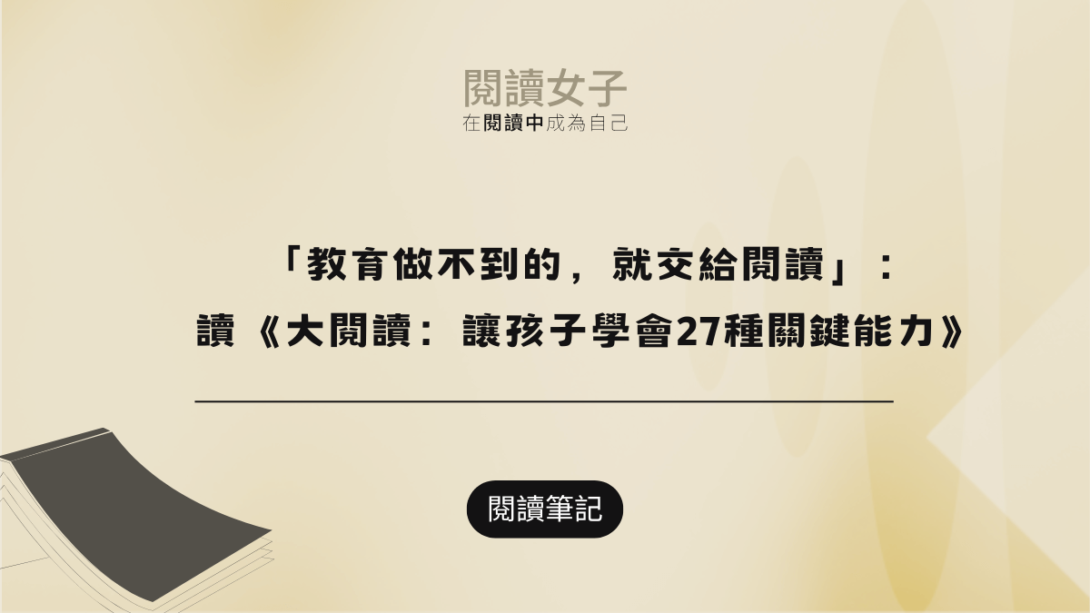 閱讀推動之路上的前輩,宋怡慧老師的著作《大閱讀:讓孩子學會27種關鍵能力》,整理二十七種學生需要的能力(如何面對失敗、處理人際關係、關於網路抹黑…..),搭配以和教學現場點相對應的主題書單,可作為閱推的參考書單,十分實用。
