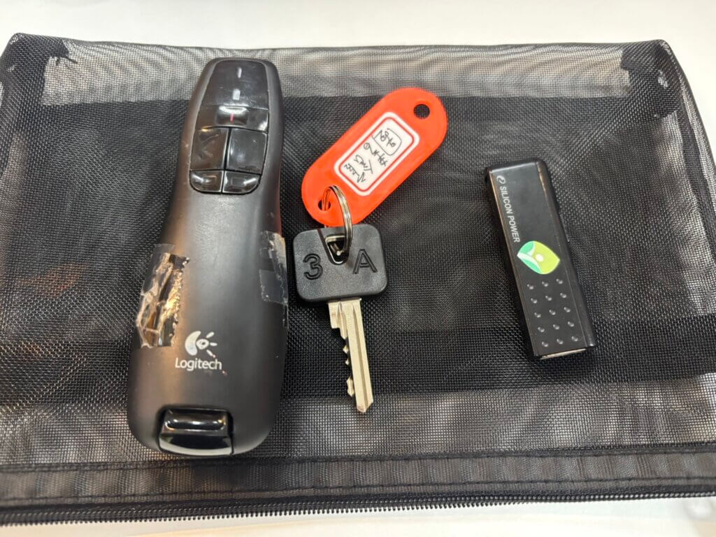 另外,準備一個小袋子裝「圖書館三寶」:簡報遙控器、圖書館鑰匙和救命USB(有時大屏會突然無法連線,雖然同事們都教過我好幾次怎麼處理,但萬一我還是無法搞定,USB直接插在大屏叫出檔案也行)