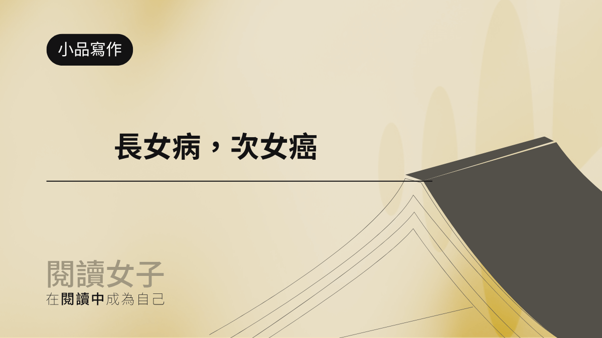 「長女病」,是過度燃燒過度盡責的親職化小大人;「次女癌」,則是同時承受性別弱勢和不被祝福的出生。願這些故事一一被訴說,苦難不再延續到下一代。