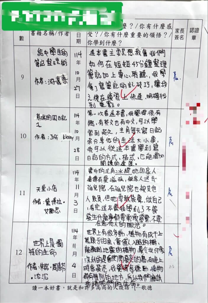 第一次改閱讀護照,最有意思的,大概是可以清楚看見各班的風格:有些班級交來的是照號碼排好,一目瞭然,寫得整整齊齊,批改速度快又心情愉悅;有些則是才翻開幾本就令人皺眉,這交出來前,有先認真檢查嗎……