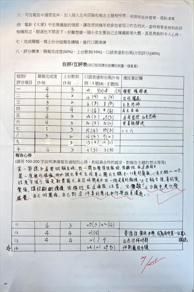 讓我驚訝的是,到了國三下,好幾個同學不約而同寫到「人生第一次體驗上台報告很緊張」,沒想到之前的國小和國一、二階段,都沒有上台練習的機會。