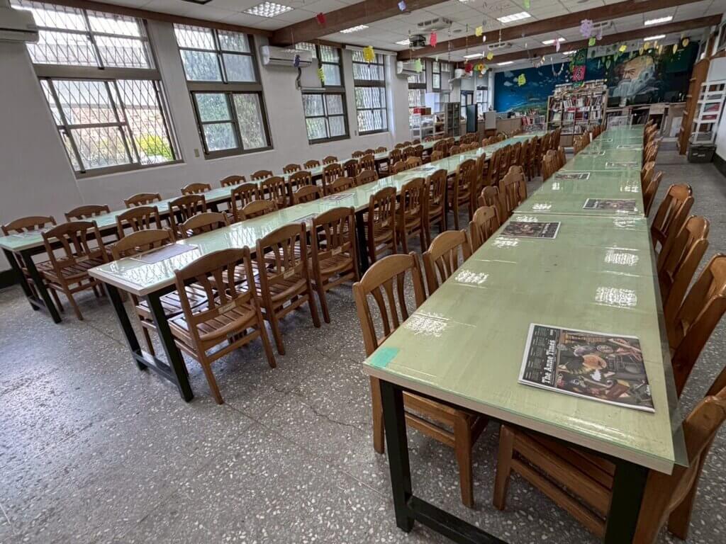 上課前請小幫手協助,在圖書館的桌面上放上一份份安妮新聞。