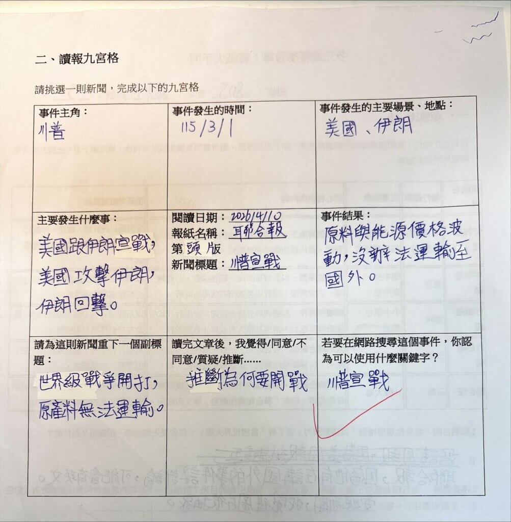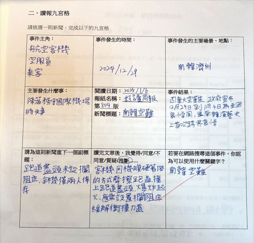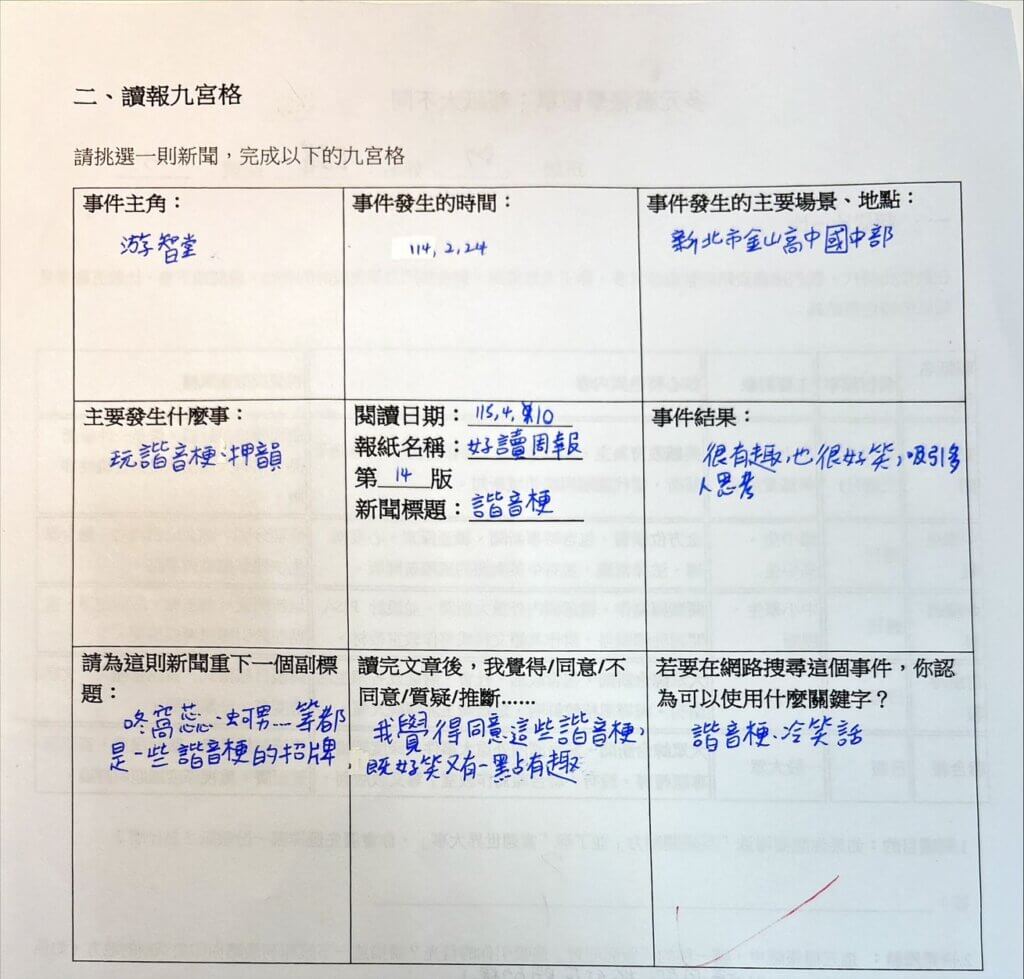 114下學年第五堂社團課:讀報九宮格