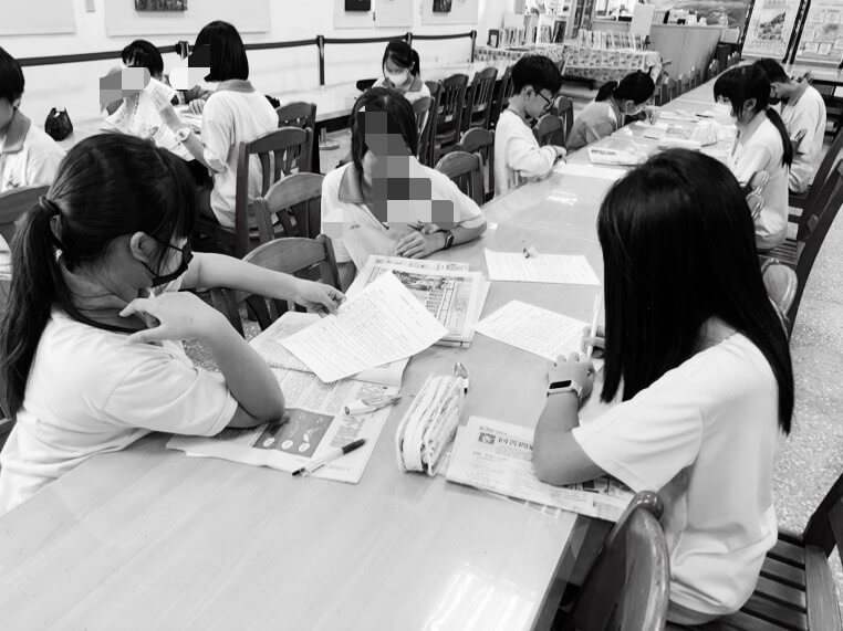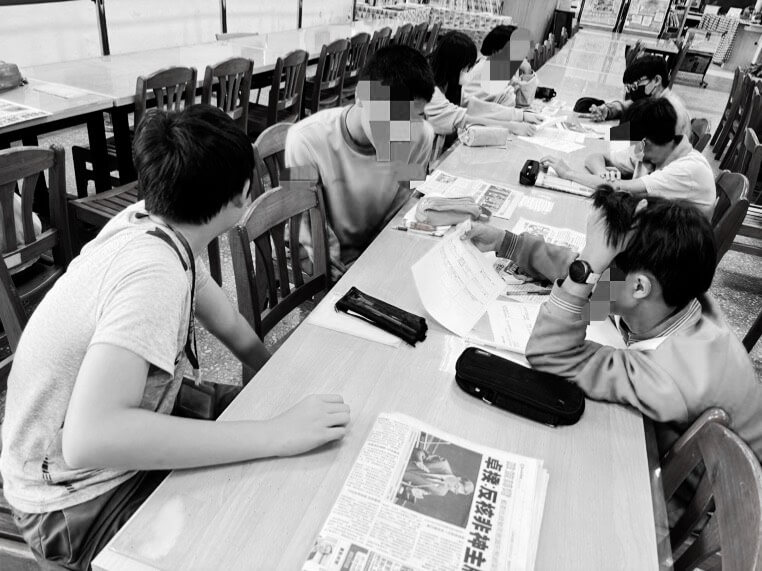 過程中我隨時走動,發現他們的問題主要是:「找不到這是報紙的第幾版」(通常在版面的上方或左上角會標示,但他們可能從小沒有看報紙的習慣所以不知道)、「不清楚什麼是副標題」(我會口頭提示,通常是報導內最特別的細節或爭議,用一到兩句話陳述,作用是吸引讀者閱讀內文)