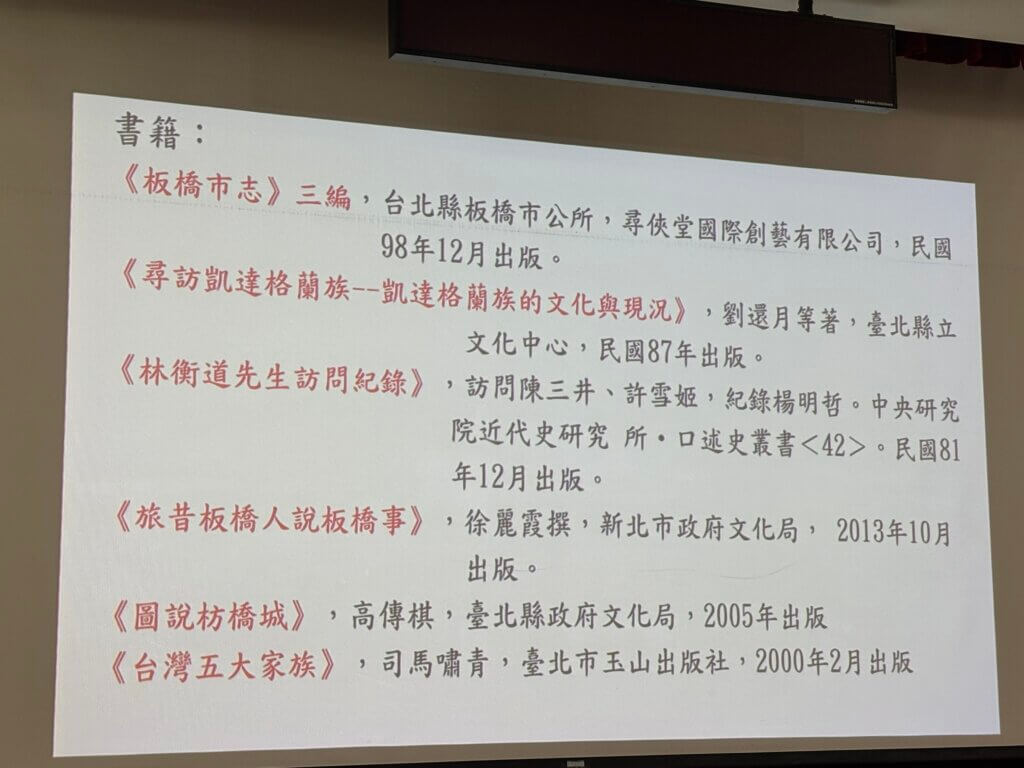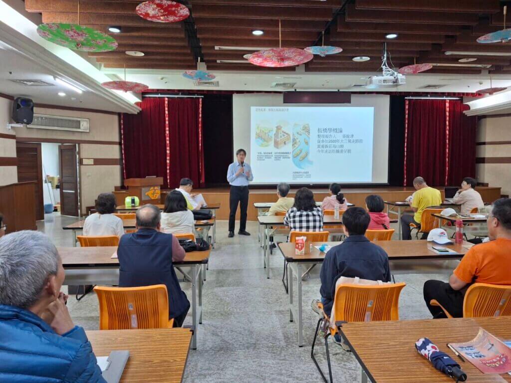 旁邊的炯任老師「爆料」,從去年十一月八號的走路節結束後,銓津老師旋即投入「板橋學」的前置準備,花不少時間爬梳文史,才整理出一份豐厚的簡報分享給大家。