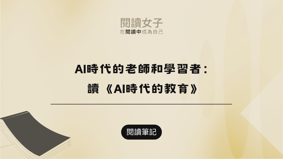 閱讀女子 閱讀筆記 AI時代的老師和學習者:讀《AI時代的教育》 「AI會增強(但絕對不會取代)師生在課堂上一起做的 ... Read More → 閱讀筆記 打造自己的路:讀《無路之路》、《走人少的路》 「你的人生太短也太寶貴,不該浪費在工作上。如果你現 ... Read More → 閱讀筆記 「猶太人絕對是這世界上最可怕、也是最傑出的族群」:讀《世局》 英國前首相邱吉爾曾說:「有些人或許喜歡,或許不喜歡 ... Read More → 閱讀筆記 「一場永不疲累的閱讀」:讀《黃色臉孔》 暨《巴別塔學院》、《地獄修業旅行》,看完第三本匡靈 ... Read More → 閱讀世界 線上課筆記(給家長的第八堂課 | 對臺灣文學教育的洞察 朱宥勳老師) 聽了一堂線上課:對臺灣文學教育的洞察,由朱宥勳老師 ... Read More → 閱讀世界 線上課筆記(給家長的第八堂課 | 對臺灣寫作教育的洞察 陳茻老師) 聽了由陳茻老師主講,名為給家長的第八堂課 | 對臺 ... Read More → 閱讀世界 20260108閱讀分區綜合座談會 請假來鷺江國中觀摩他校辦的分區綜合座談會,也來聽聽 ... Read More → 閱讀筆記 「最基本、最重要,也是最有趣的」:讀《圖書館的神》 「離開規劃好的人生,開始走上歧路的我,清白而正直的 ... Read More → 小品寫作 載運我渡過人生之河的那艘「紙船」 前兩週去聽國文科實習老師的教學演示,內心五味雜陳。 ... Read More → 以閱讀登大人 重新打造第一人生 分類分類 選取分類 觀點寫作 (129) 小品寫作 (60) 時事評論 (68) 閱讀世界 (64) 閱讀台灣 (17) 閱讀影劇 (6) 閱讀推動 (40) 閱讀筆記 (74) 近期文章 閱讀推動懶人包(上) 閱讀推動懶人包(下) 閱讀推動必備十本推薦書單 2025年度回顧 2025年度書單回顧