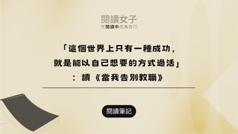 「這個世界上只有一種成功,就是能以自己想要的方式過活」:讀《當我告別教職》美國記者、作家 Christopher Morley:「這… 閱讀女子2026-02-17閱讀全文「這個世界上只有一種成功,就是能以自己想要的方式過活」:讀《當我告別教職》